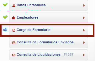 Ir a la pestaña “Carga de Formulario”.Para esto, deben estar completos los datos personales y del agente de retención.