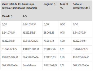 - Mínimo no imponible general: Cuando la suma de todos los bienes gravados situados en el país sea inferior a $11.282.141,08 no se deberá abonar el impuesto.