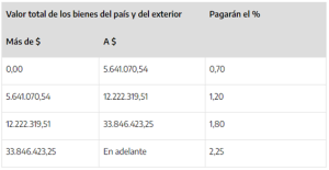 Escala del impuesto para sujetos residentes en el país con bienes situados UNICAMENTE en el país.